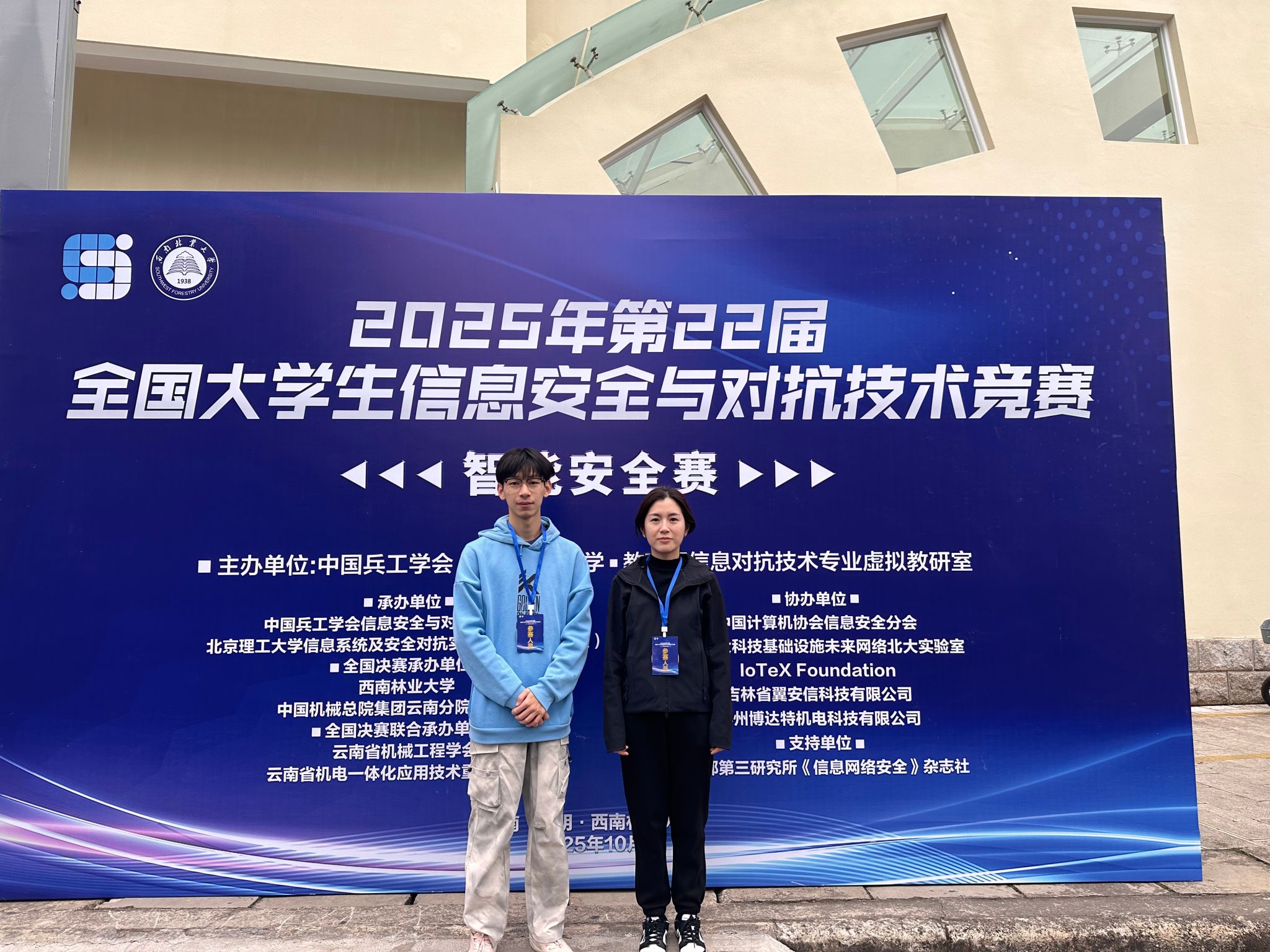 (计算机工程学院 通讯员 孙成娇)近日,第22届全国大学生信息安全与对抗技术竞赛(ISCC)全国总决赛在昆明落幕,学校计算机工程学院孙成娇博士指导的学生廖嘉旺在“百度Apollo星火自动驾驶仿真”赛项中获国家级一等奖。