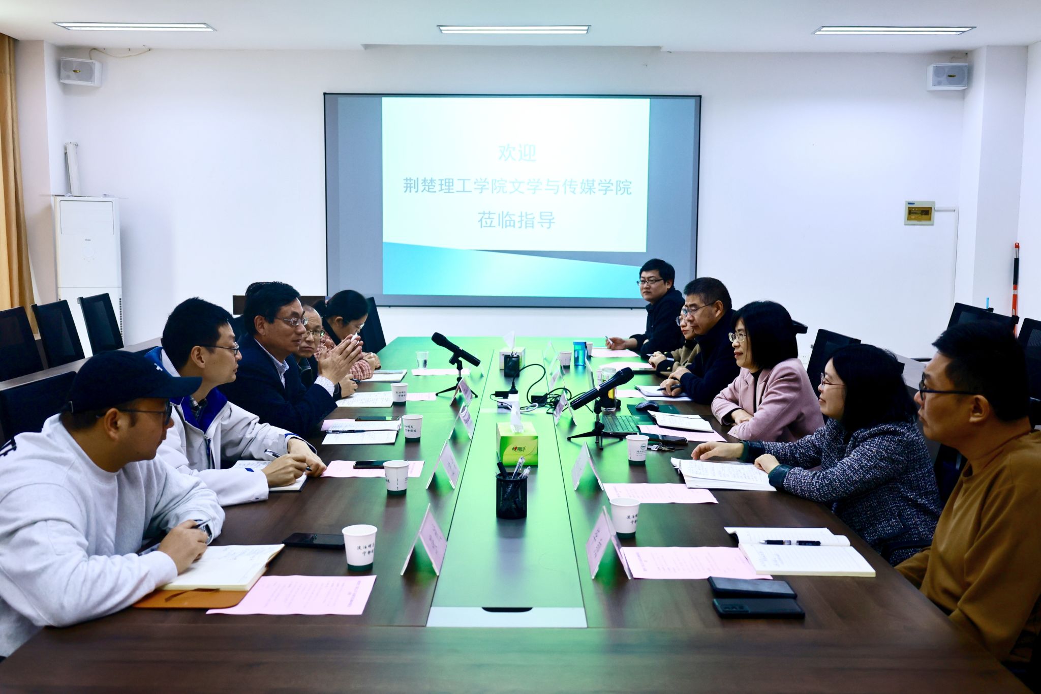 (文学与传媒学院 通讯员 胡江伟)11月10日,荆楚理工学院文学与传媒学院院长陈洪友一行到学校文学与传媒学院开展调研。学校文学与传媒学院院长刘群主持座谈会。