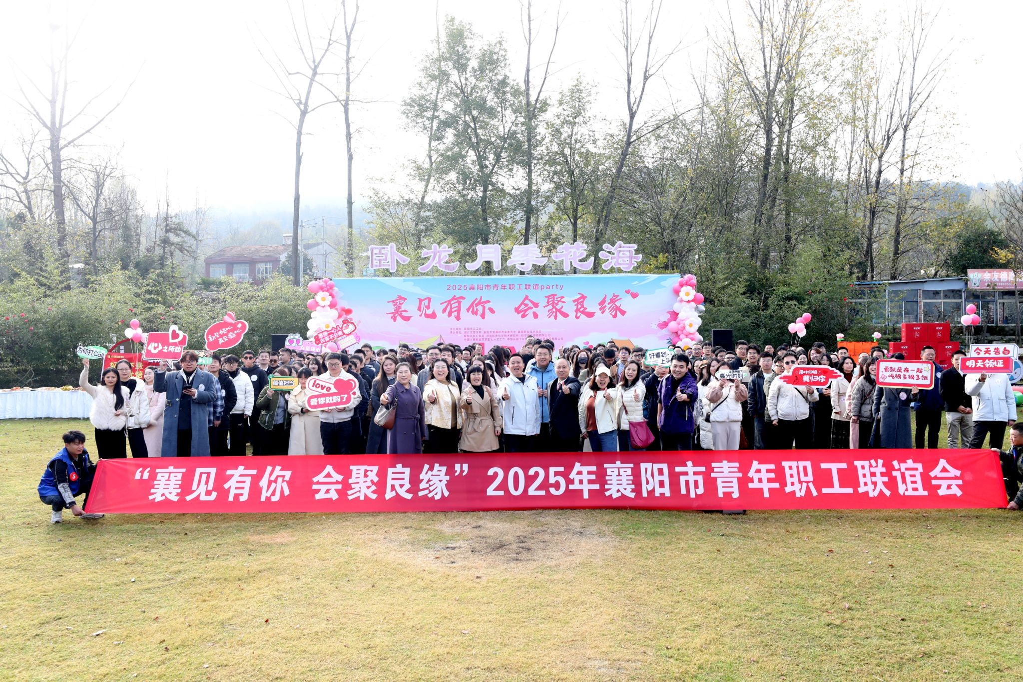 (工会 通讯员 张全娥)11月22日,由襄阳市总工会主办、学校工会牵头承办的“襄见有礼 会聚良缘”2025年襄阳市青年职工联谊活动,在襄城区卧龙镇月季花海圆满举行。全市220余名青年职工参加活动。市总工会女职工部部长郑合云及有关单位工会主席出席启动仪式。学校工会常务副主席刘浩代表举办单位致辞。