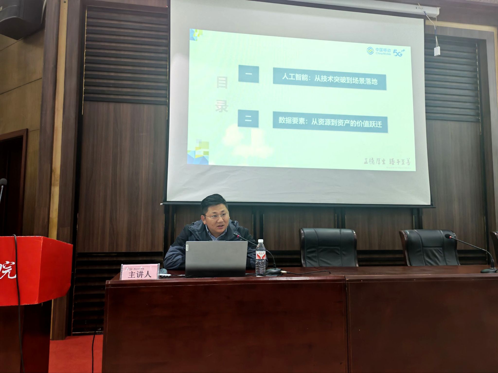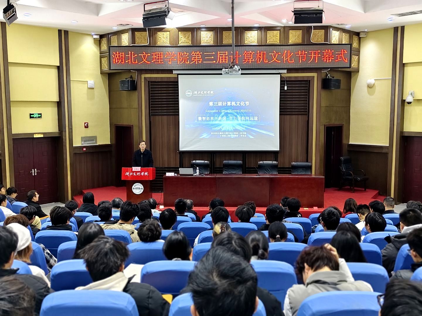 开幕式后,王磊以《科技赋能防汛抗旱 守护襄阳一方安澜》为题,结合本地防汛实际,解析信息化技术在提升防汛抗旱效能中的应用;霍康在《AI与数据要素——数智时代的双轮驱动与青年机遇》报告中,阐述了人工智能与数据要素如何推动产业升级,并寄语青年把握发展机遇。宋剑作为湖文校友,结合自身城市治理工作经验,勉励学弟学妹关注前沿技术、扎根实践沃土,在服务社会治理与产业创新中实现自我价值。