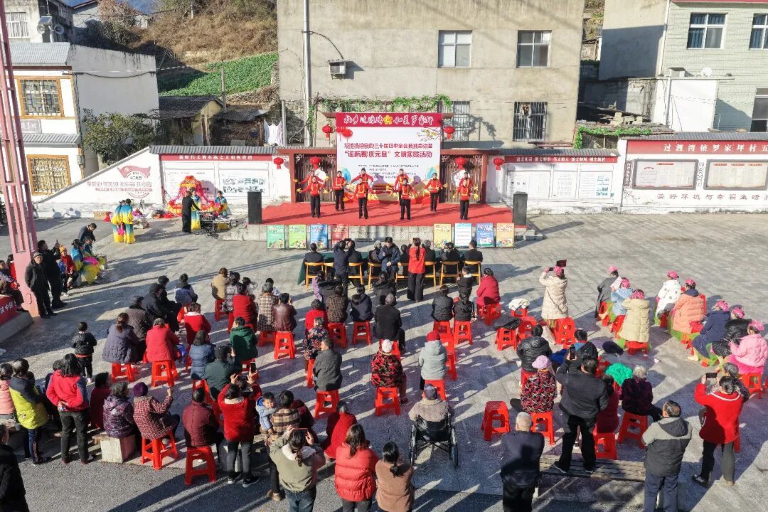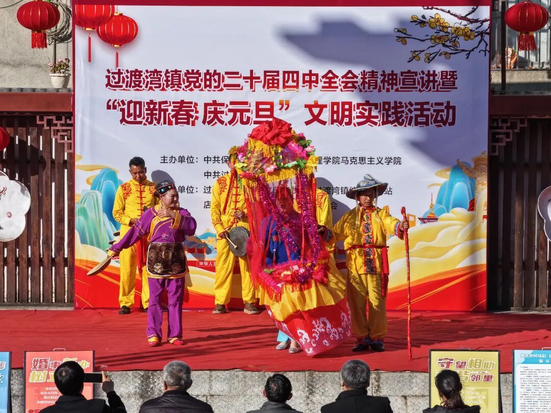 为增强理论宣讲感染力,学校音乐与舞蹈学院师生联合店垭畅想艺术团、过渡湾镇文艺骨干,在罗家坪村文化广场举办“迎新春庆元旦”文明实践文艺宣讲活动。渔鼓《四中全会喜讯多》、舞蹈《我们正青春》《相亲相爱》、三句半《四中全会放光芒》等丰富多彩的节目轮番上演,铿锵的鼓点、悠扬的唱腔、欢快的舞步,把“十五五”规划的宏伟蓝图、乡村振兴的美好愿景融入旋律舞步,娓娓道来。