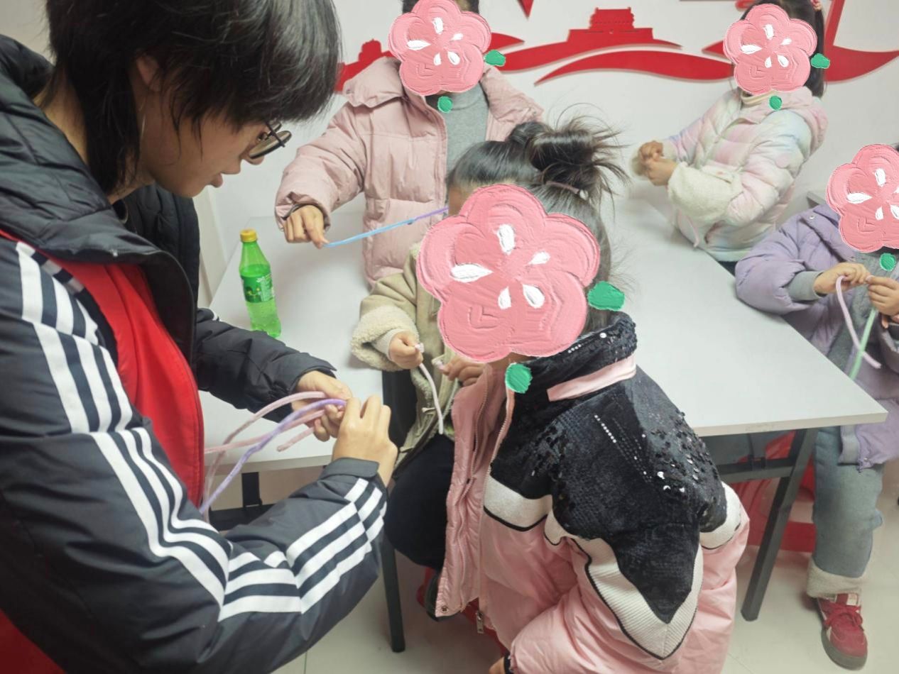 土木工程与建筑学院“砼心筑梦”志愿者教孩子们使用扭扭棒