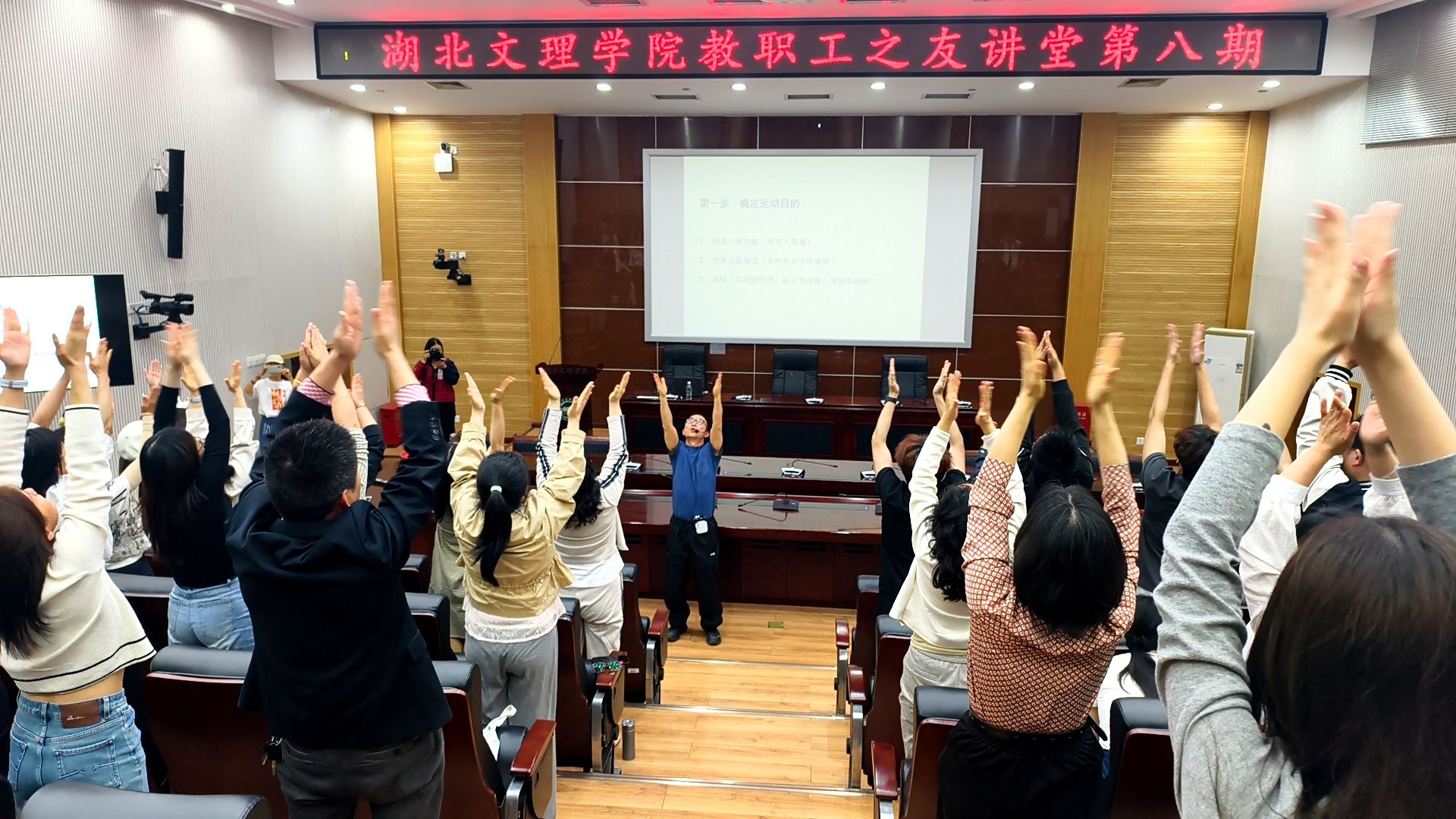(工会 通讯员 潘清玉 张全娥)为深入开展“我为师生办实事”实践活动,丰富教职工康养服务内容,提升教职工健康意识与生活质量,4月27日,学校工会举办教职工之友讲堂第八期——养生保健讲座。本次讲座以“健康知行”为主题,邀请体育学院王红俊老师担任主讲,学校工会常务副主席刘浩主持讲座。