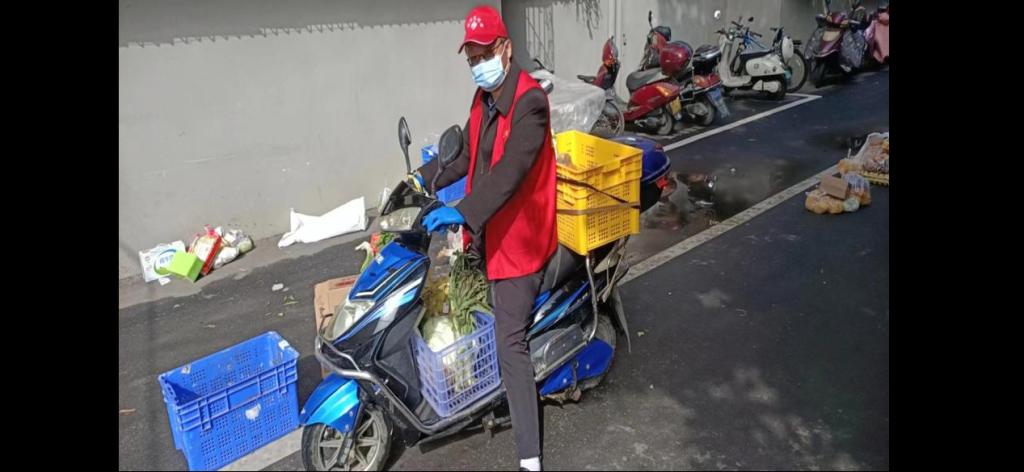 熊华山在市百货站小区门岗值守兼采购配送物资