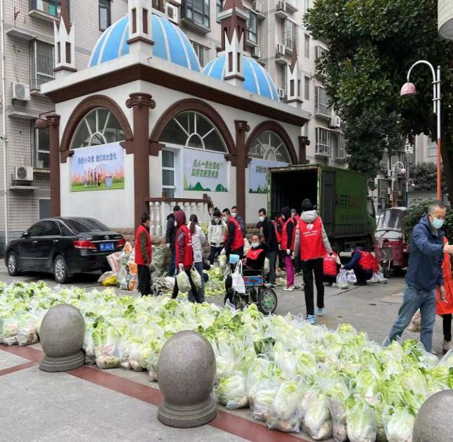 罗晓玲在长春小区参加核酸扫码、分发爱心菜工作