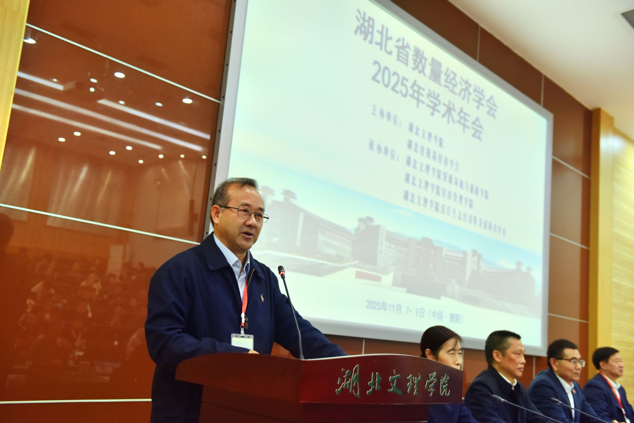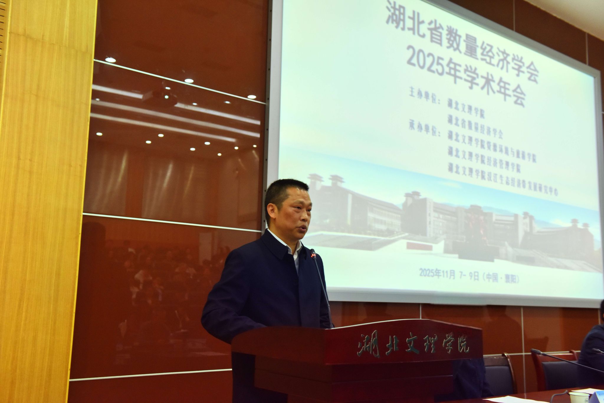 (资环学院 通讯员 邓洁屹)11月7日至8日,由学校与湖北省数量经济学会联合主办,学校资源环境与旅游学院、经济管理学院及汉江生态经济带发展研究中心共同承办的湖北省数量经济学会2025年学术年会顺利召开。年会以“数智赋能湖北加快建成中部地区崛起重要战略支点”为主题,来自武汉大学、华中科技大学、中南财经政法大学等省内外高校的200余名专家学者和师生代表参会,通过主旨报告、分组研讨、成果交流等形式,共探数智时代背景下湖北经济高质量发展的新路径。学校党委书记吴超仲出席开幕式并致辞,襄阳市社科联党组成员、副主席王进出席活动并讲话。