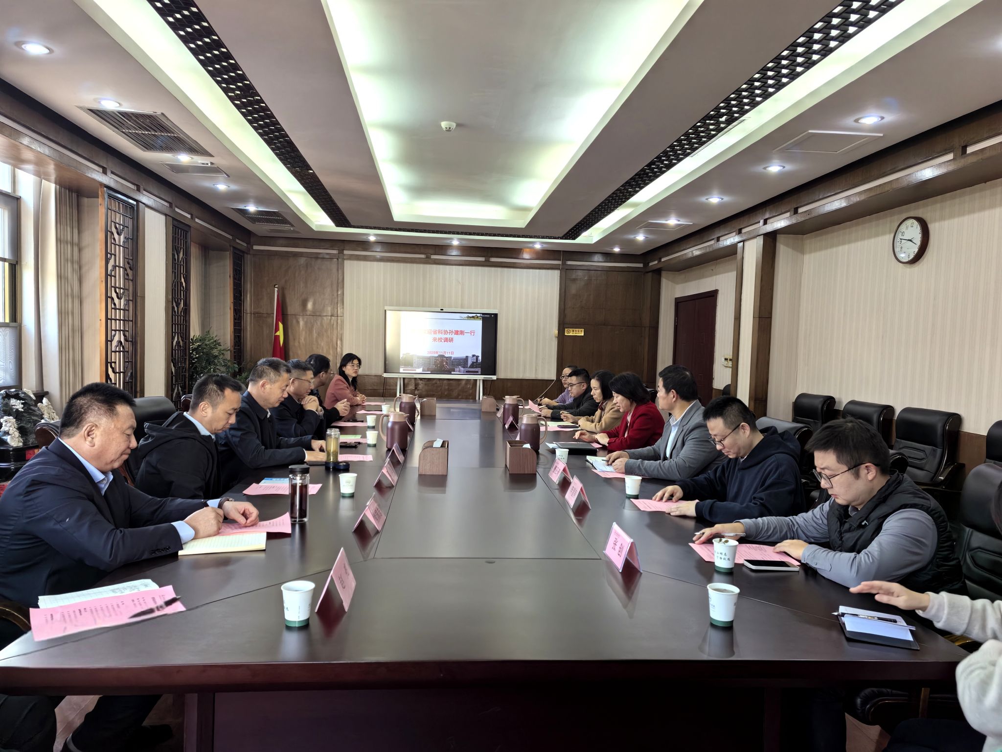 (科发院 通讯员 肖伟伟)11月11日,湖北省科协党组成员、副主席孙建刚一行来校调研指导。学校党委书记吴超仲、副校长汪云,襄阳市科协党组书记苏昊,党组成员、副主席刘黎明陪同调研。