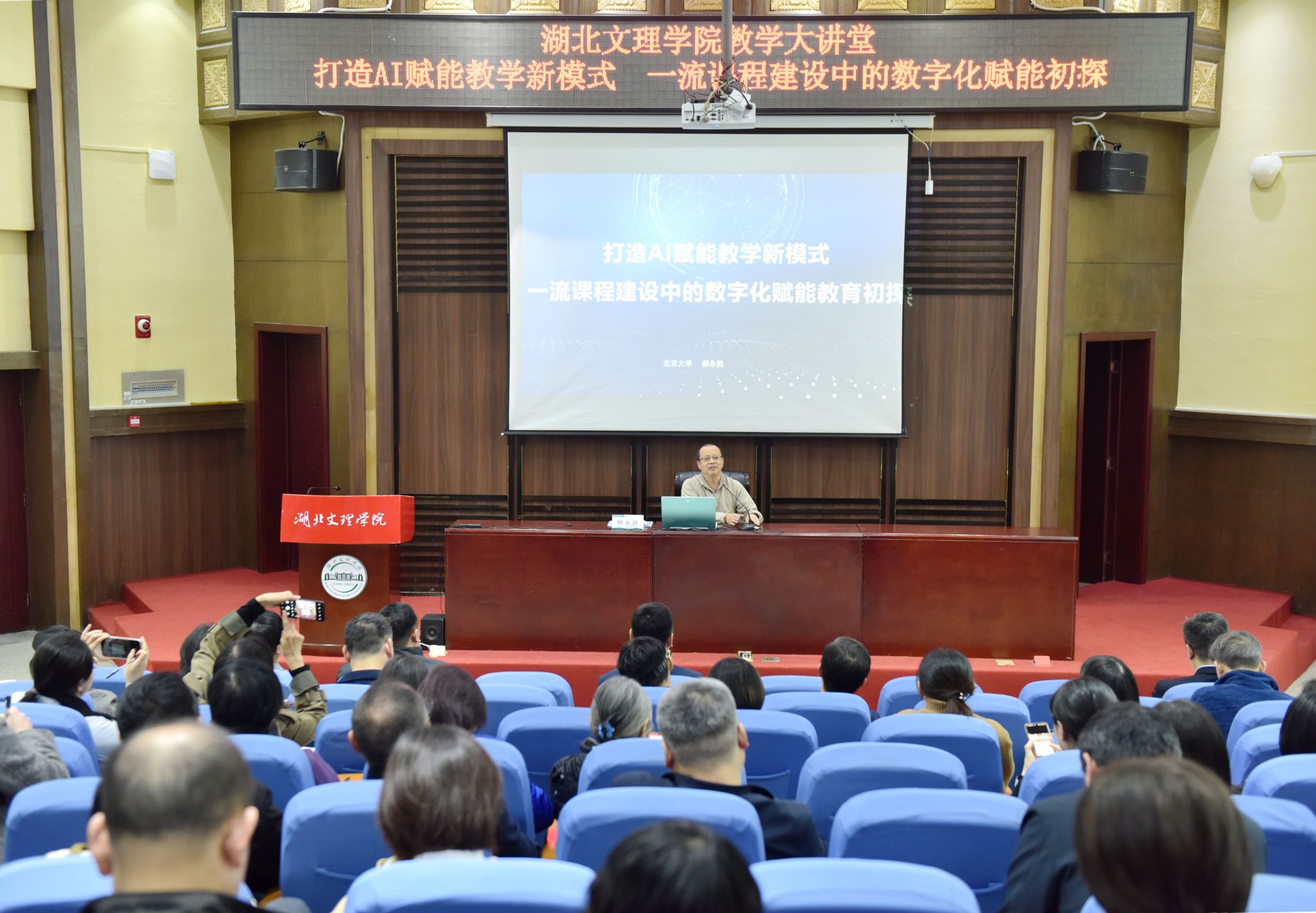 (本科生院 通讯员 黄金洲 张焱磊)11月14 日,学校2025年第二期教学大讲堂正式开讲。教育部高等学校国家级实验教学示范中心联席会首席技术专家、中国虚拟现实与可视化产业技术创新战略联盟教育委员会主任、北京大学信息科学技术学院郝永胜教授应邀来校,作题为《打造AI 赋能教学新模式——一流课程建设中的数字化赋能教育初探》的专题报告。报告会由学校副校长秦军荣主持,校长杜国锋、副校长杭波出席,各二级学院院长、教学副院长、专业负责人及骨干教师等参加活动。