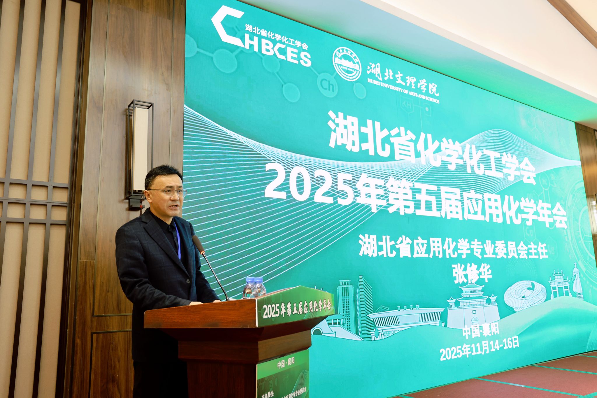 湖北省化学化工学会应用化学专业委员会主任委员、湖北大学化学化工学院院长张修华教授代表学会致辞,对湖北文理学院的承办工作表示感谢,并就学会发展现状与未来规划做了介绍。