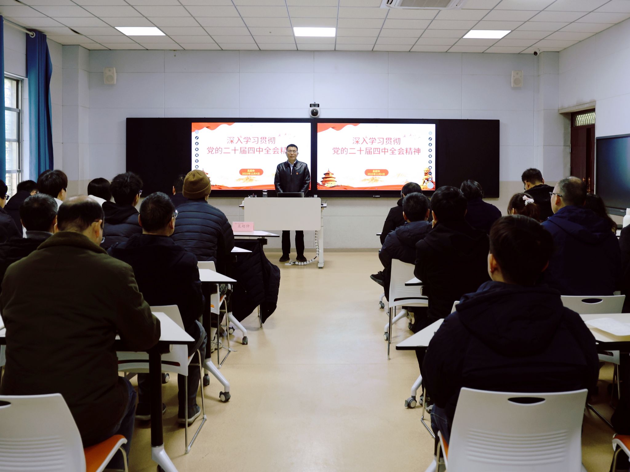 吴超仲系统阐释了党的二十届四中全会精神的丰富内涵与核心要义,重点解读了我国“十四五”时期取得的重大成就,以及“十五五”时期经济社会发展的指导思想、重大原则、主要目标、战略任务和重大举措、根本保证。他指出,党的二十届四中全会是在我国即将进入“十五五”时期、为基本实现社会主义现代化夯实基础的关键阶段召开的一次具有里程碑意义的重要会议,全会提出的“一体推进教育科技人才发展”战略部署,深刻体现了教育作为基础性、战略性支撑的地位,学校要主动融入国家创新体系,以教育之强助力湖北加快建成中部地区崛起的重要战略支点。