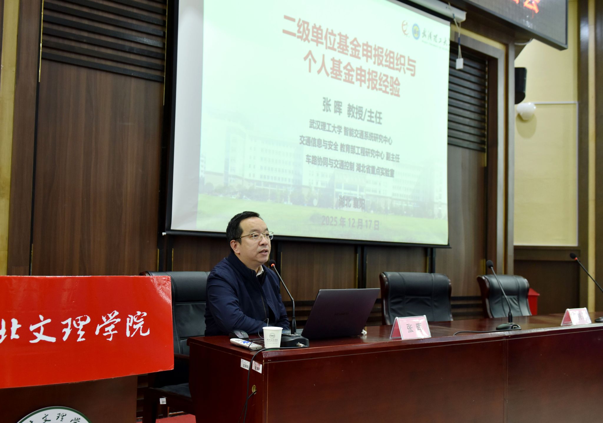(科学技术发展院 通讯员 张彦林 郭壮)12月18日,学校举行国家基金项目申报辅导报告会,武汉理工大学张晖教授和武汉大学刘金波教授分别就自然科学类与社会科学类基金项目申报作专题辅导。学校副校长汪云出席会议,会议由科学技术发展院院长常华进主持。
