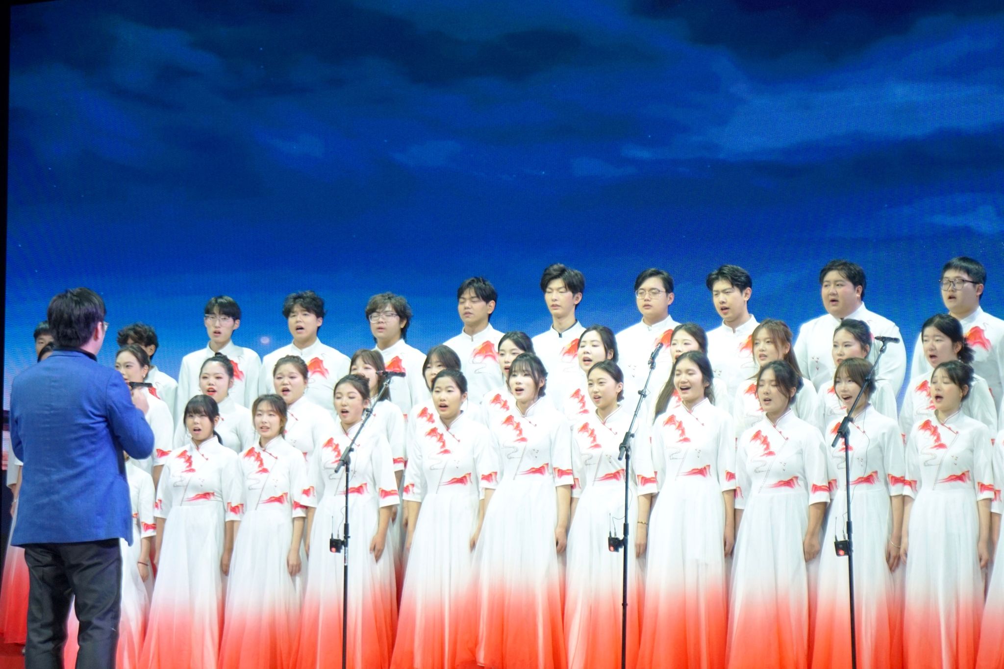 晚会在民乐合奏《欢庆序曲》中拉开序幕。歌伴舞《相亲相爱》传递出团结友爱的温暖情怀;古典舞《再现敦煌》以飞天舞姿复刻壁画神韵,展现中华优秀传统文化魅力;国标舞《舞耀芳华》舒展灵动,绽放青年一代的自信风采;女声独唱《国风》以声传韵、以曲咏志,诠释中华文化的清雅底蕴与时代气象;现代舞《祖国不会忘记》深情演绎家国情怀,唤起共同记忆;管乐合奏《少年》节奏激昂,奏响湖文青年逐梦前行的青春强音;古典舞《扇舞丹青》以扇为笔、动静相生,既呼应校训精神,也彰显学校国学美育的深厚积淀。晚会在全体合唱《我的祖国》的激昂旋律中圆满落幕。