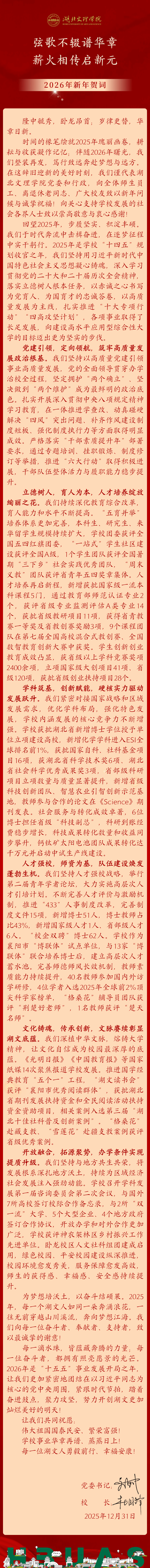 弦歌不辍谱华章 薪火相传启新元 ——湖北文理学院2026年新年贺词