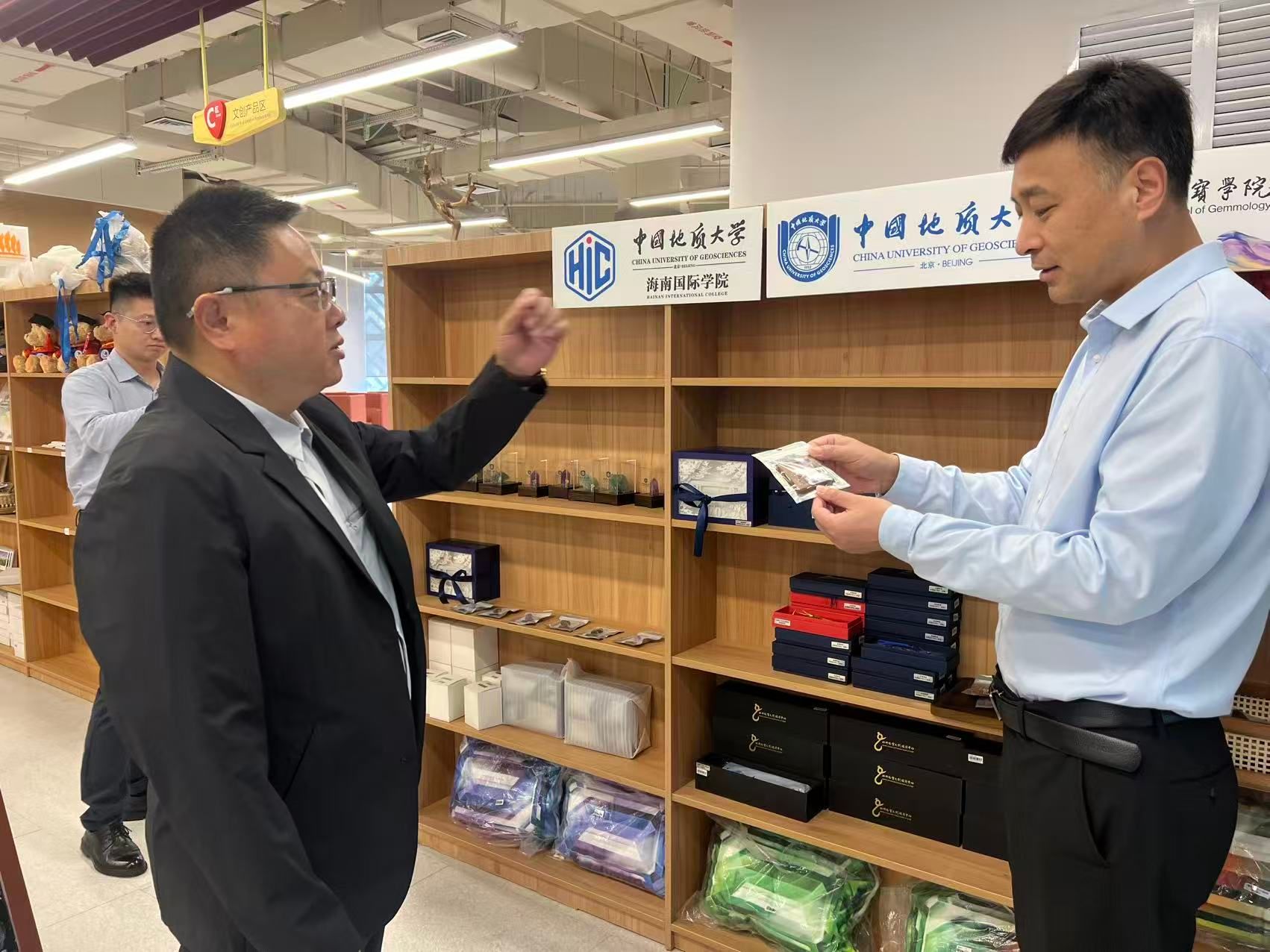 在陵水黎安国际教育创新试验区,杜国锋一行实地考察了共享图书馆、综合体育中心、公共教学服务中心等配套设施,详细了解了试验区入驻高校的基础设施建设与国际教育项目开展情况,并与中国地质大学(北京)海南国际学院院长曾亚军围绕国际教育交流合作、教育教学运行、办学规模等议题进行了座谈研讨。