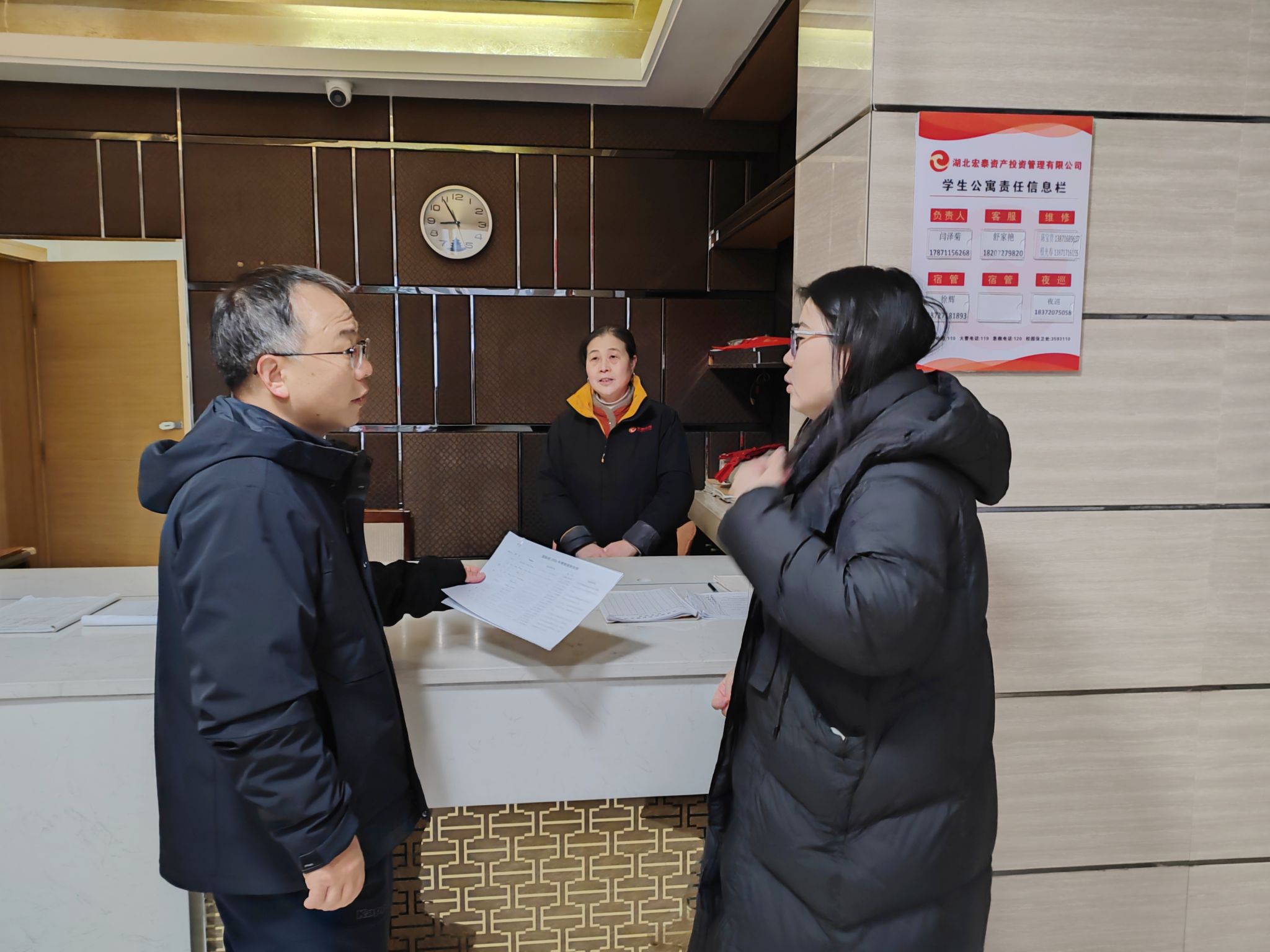张樊在走访中强调,要始终牢固树立大安全观,进一步增强责任意识,全力维护校园安全稳定。要从严从细抓好值班值守工作,严格落实24小时巡逻值班制度,确保人员在岗、信息畅通、响应及时,遇有突发情况要迅速报告、稳妥处置。要持续关心关注留校学生的假期生活,特别是留学生群体,结合实际组织开展形式多样的文体活动,做好后勤服务保障工作,努力营造温馨和谐的节日氛围,确保师生度过一个平安、欢乐、祥和的新春佳节。