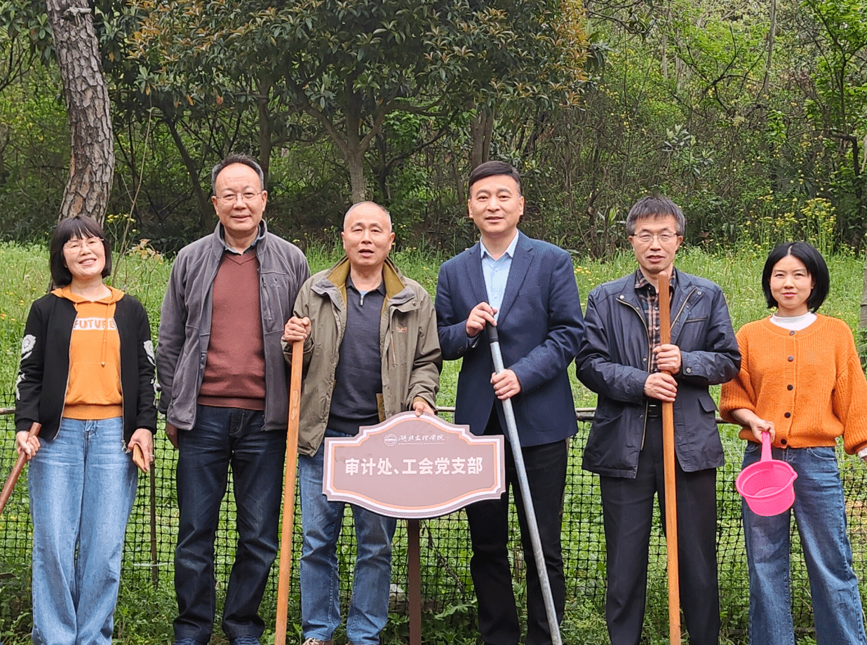 (审计处、工会 通讯员 陈明均、潘清玉)4月2日,审计处、工会党支部组织党员干部走进学校“一站式”学生社区“劳园”,开展以“践行五育并举,落实劳动育人”为主题的支部主题党日活动。校长杜国锋以普通党员身份参加,与党员干部一起劳动实践,用实际行动诠释劳动教育的重要性。