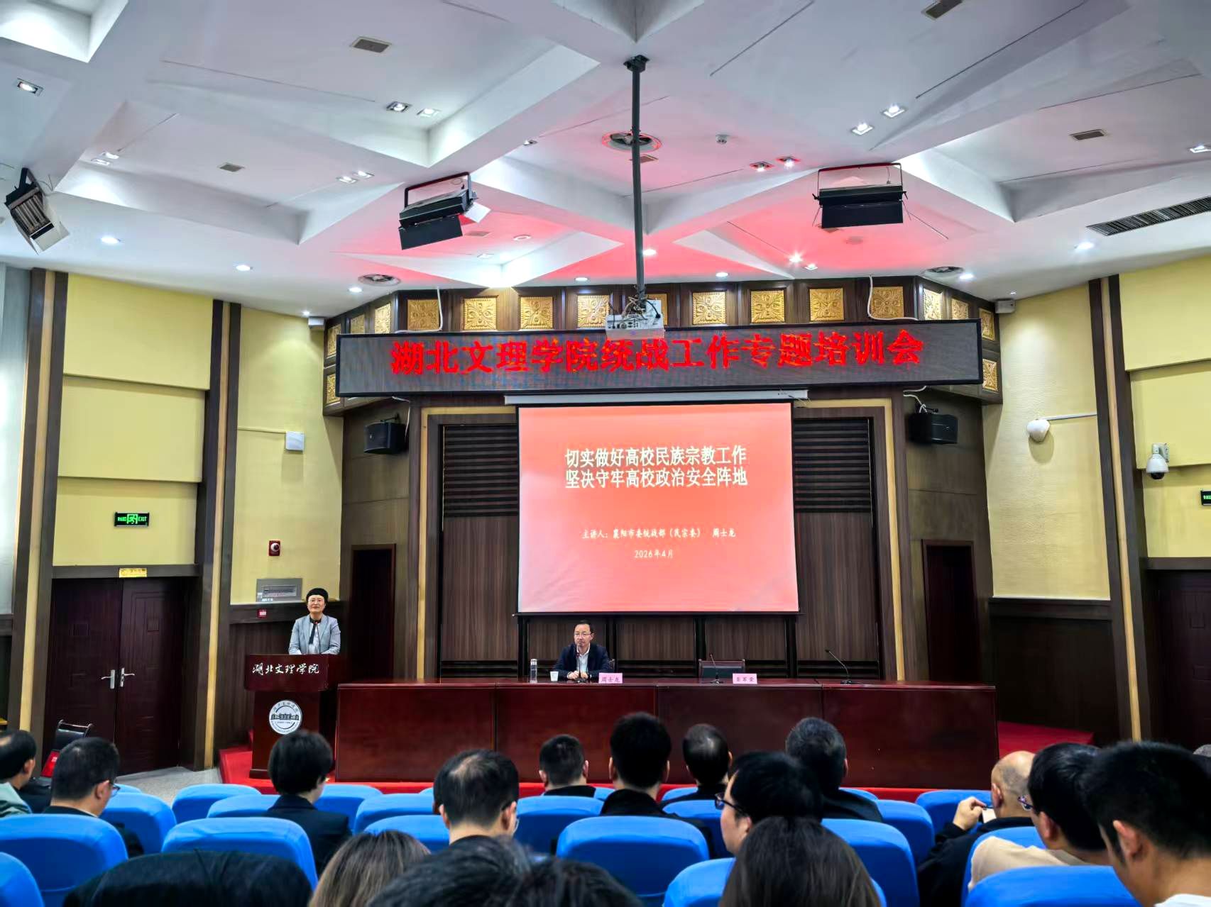 会议邀请襄阳市委统战部副部长周士龙作题为《切实做好高校民族宗教工作 坚决守牢高校政治安全阵地》的专题辅导报告。