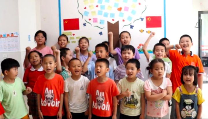 图中学生一同合唱《我和我的祖国》,为河南加油 中国青年网通讯员 曾华宇 摄