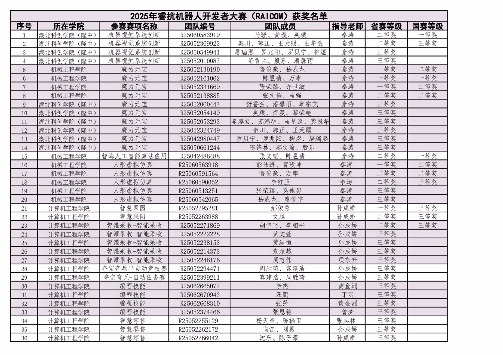 学校学生在2025年睿抗机器人开发者大赛(RAICOM)全国总决赛获奖