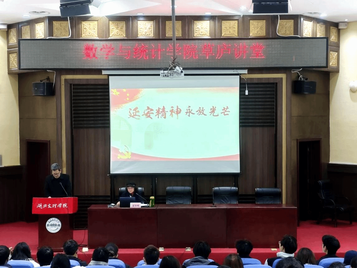 (数学与统计学院 通讯员 赵微)11月19日,数学与统计学院“草庐讲堂”顺利开讲,特邀襄阳市延安精神研究会会长、湖北文理学院原纪委书记、监察专员宋双伟作题为《延安精神永放光芒》的专题辅导报告。讲座由数统学院党委书记袁红星主持。