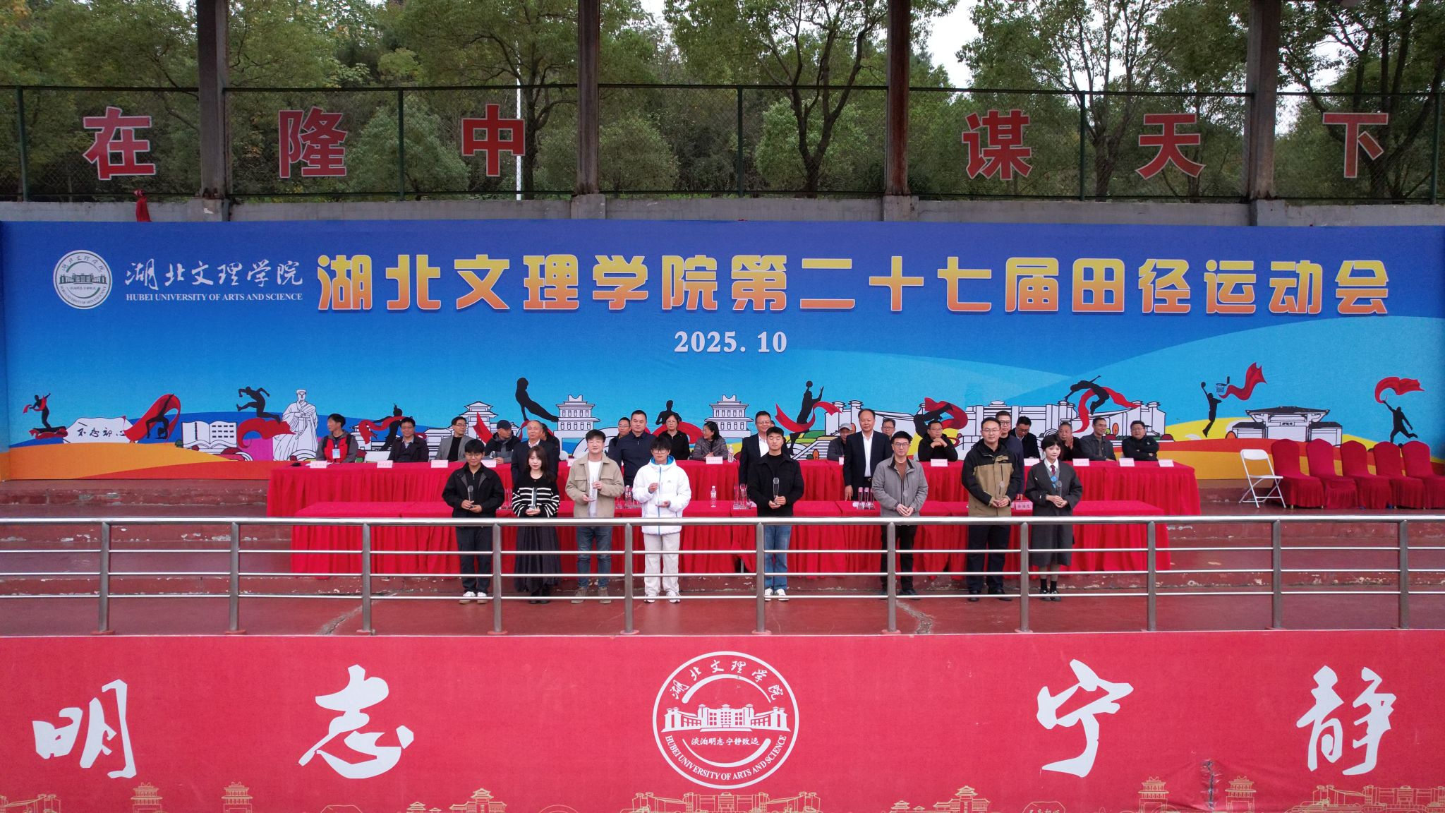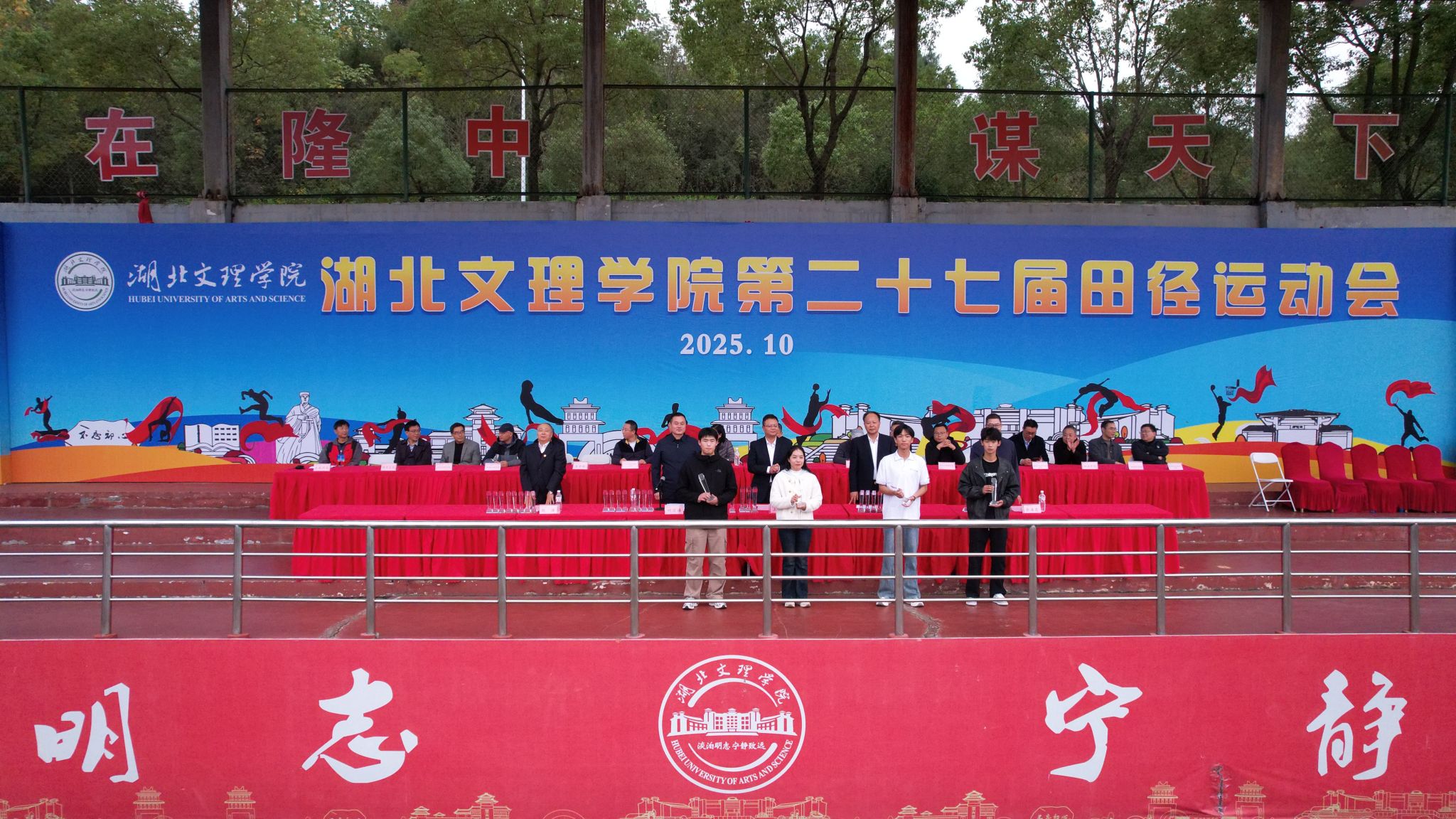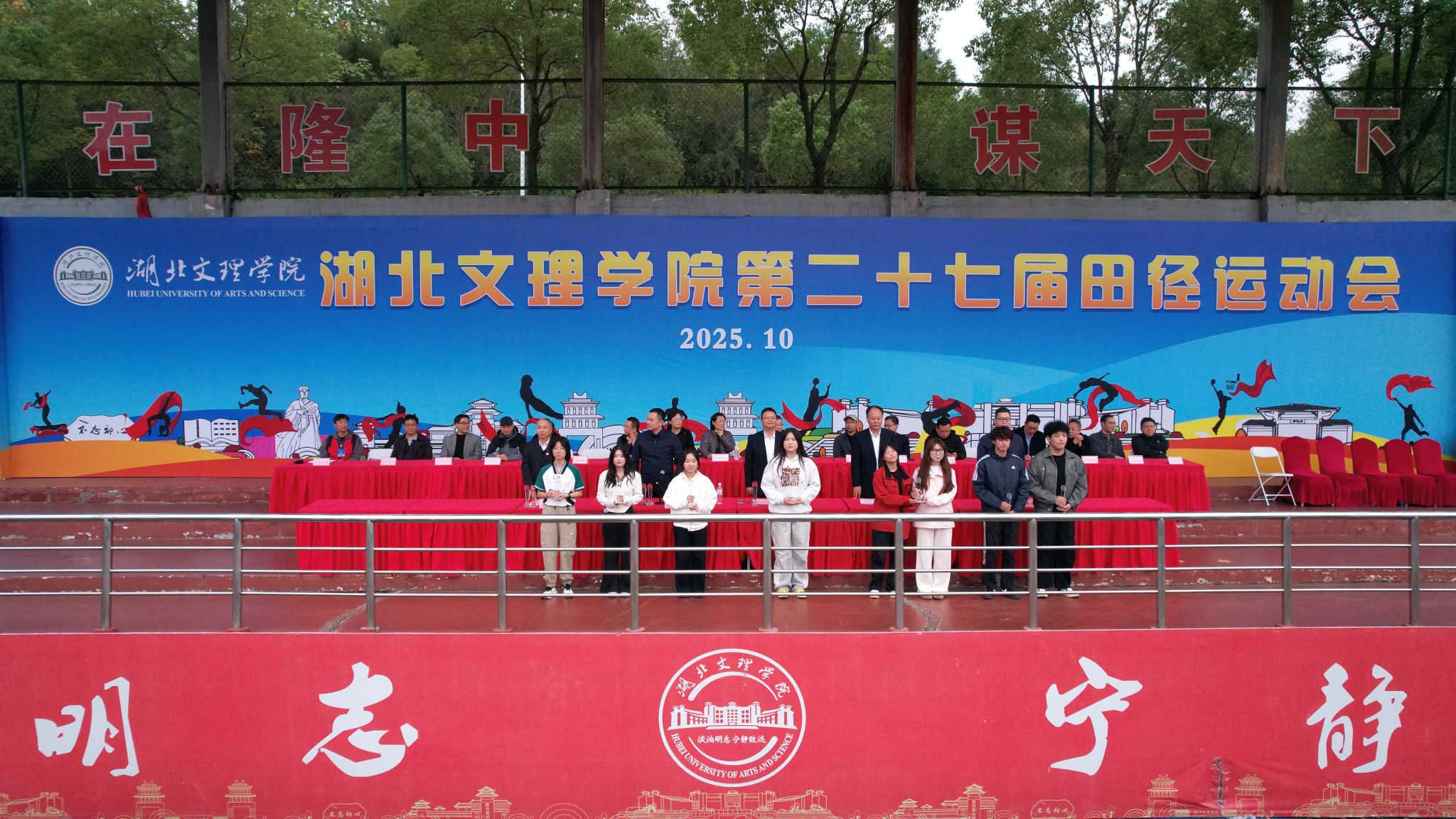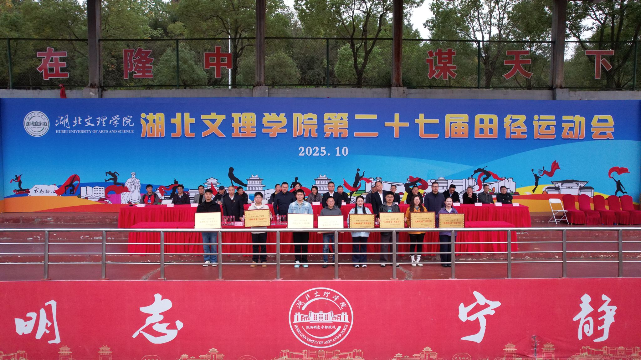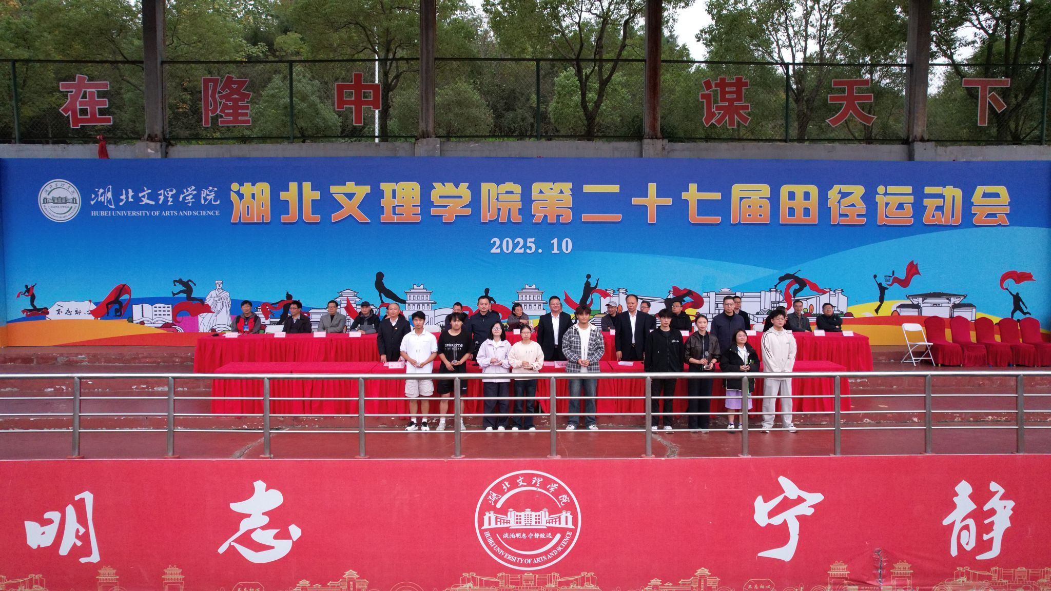 闭幕式上,第二十七届田径运动会总裁判长周福利宣布比赛结果;体育委员会副主任、体育学院院长张华江宣读《关于表彰2024-2025学年度“运动校园”建设先进单位的决定》,汽车与交通工程学院、数学与统计学院、计算机工程学院、政法学院、物理与电子工程学院、机械工程学院、土木工程与建筑学院、体育学院等8个单位获评2024-2025学年度“运动校园”建设先进单位。