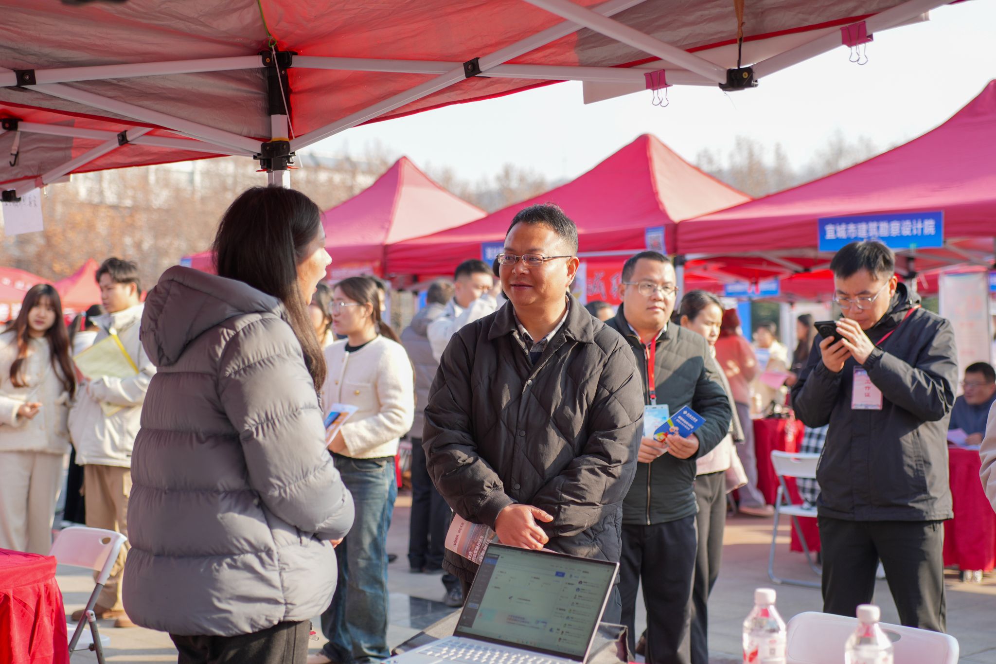 招聘专区现场气氛热烈,毕业生积极投递简历、咨询岗位,用人单位详细介绍了企业发展、岗位需求与职业前景。各二级学院就业工作负责人主动对接与学科相关的企业,促进人才供需精准匹配。部分非毕业年级学生也前来了解市场动态与招聘要求,为学业规划与就业准备奠定基础。