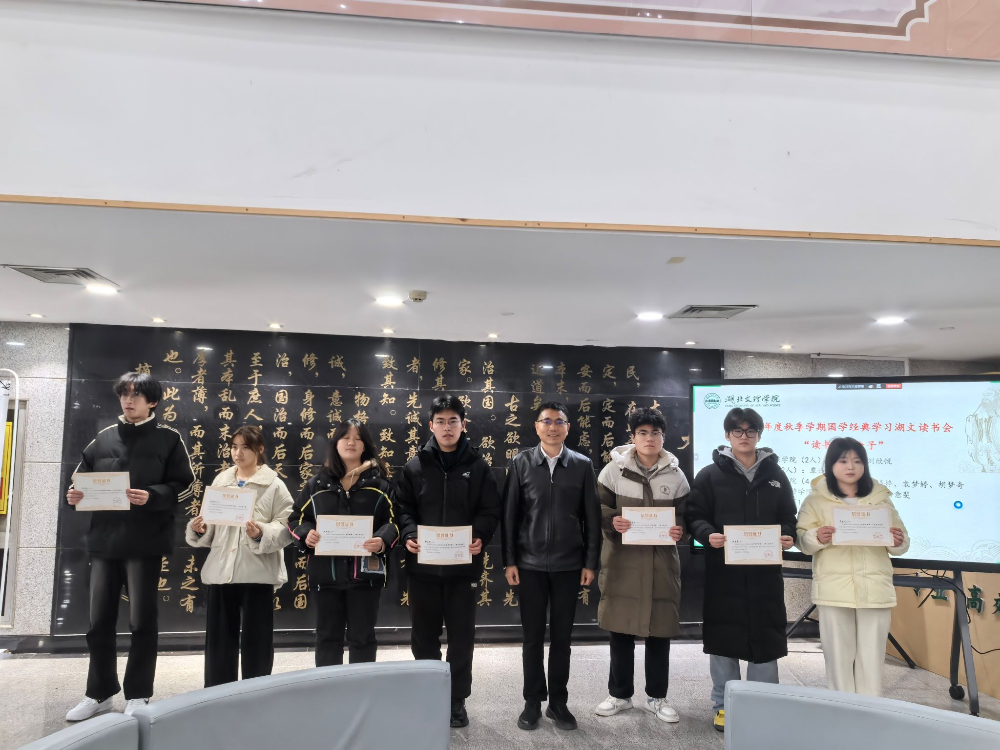 吴超仲为获评2025年度“读书积极分子”称号的15名学生颁奖,鼓励他们继续深耕经典、示范引领,带动更多师生参与经典研读。