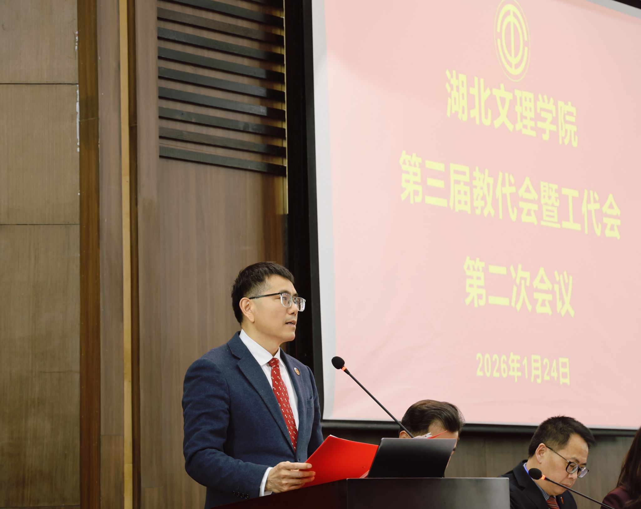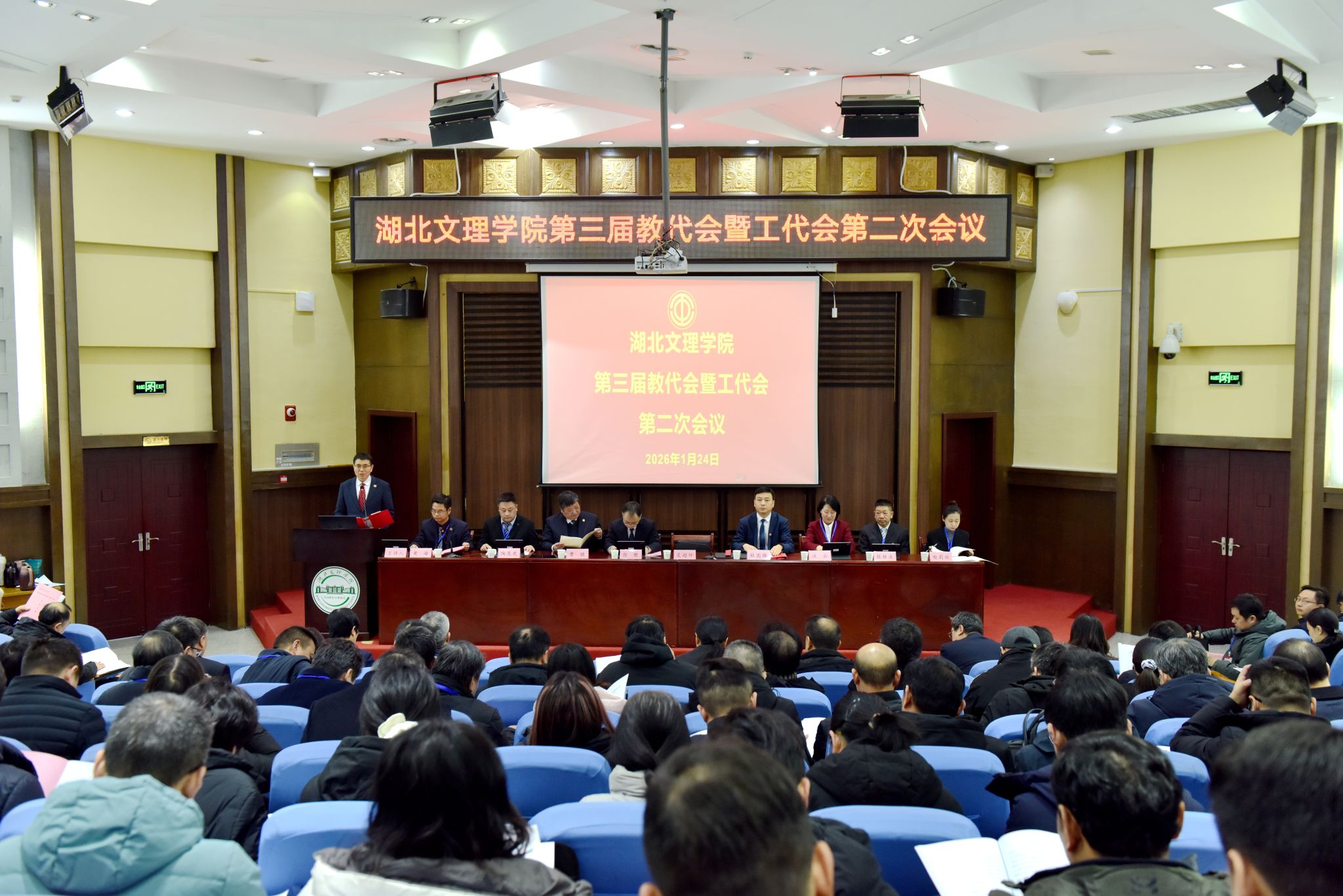 会议还听取了学校工会工作报告、财务工作报告、提案工作报告,以及《湖北文理学院“十五五”事业发展规划(草案)》《湖北文理学院中层干部、教师岗位、教辅岗位年度考核暂行办法(草案)》的起草说明。