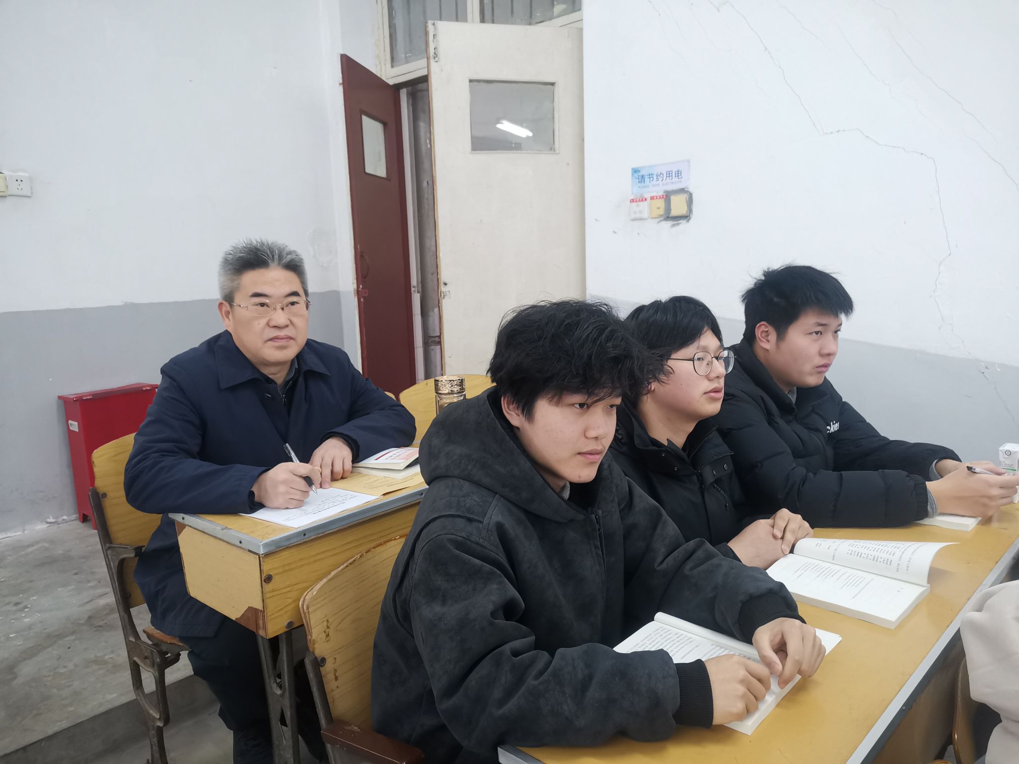 校长杜国锋与物电学院电工2411班学生同上第一堂课。课后交流中,他指出,全校要持续深化思政课改革创新,紧密结合青年学生的思想特点、认知规律和成长需求,积极探索教学方法与呈现形式的创新,切实增强思政课的思想性、理论性、亲和力和针对性。要始终立足落实立德树人根本任务,把党的创新理论讲深、讲透、讲活,不断增强思政课的吸引力与感染力,引导广大青年学生坚定理想信念、厚植家国情怀,树立正确的世界观、人生观、价值观,努力成长为堪当民族复兴重任的时代新人。