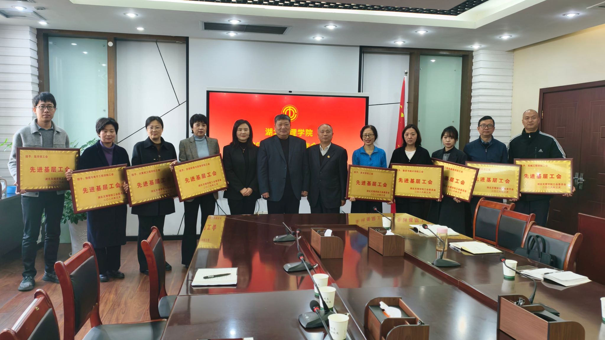 会议对2025年度工会工作先进集体进行表彰。医学院工会、资源环境与旅游学院工会、机械工程学院工会、美术学院工会、物理与电子工程学院工会、土木工程与建筑学院工会、数学与统计学院工会、计算机工程学院工会、图书馆工会等九个二级工会荣获“2025年度先进工会”称号。