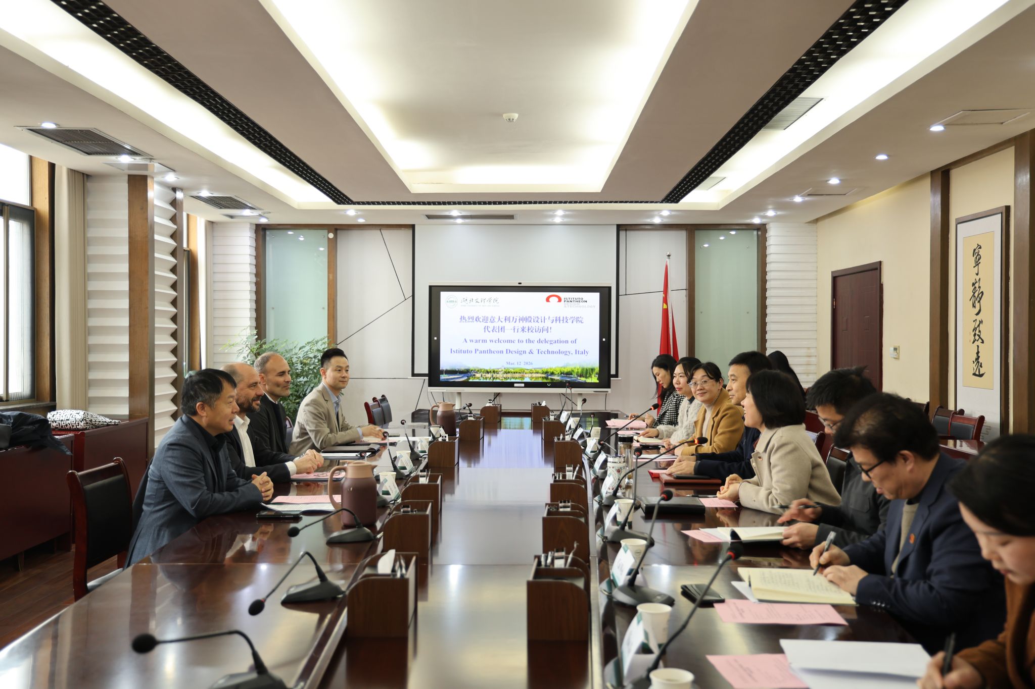 (国际处 通讯员朱谷清)3月12日,意大利万神殿设计与科技学院校长朱利奥・古易迪(Giulio Guidi)、校长助理兼对外合作经理曼努埃尔・奥尔特加・迪亚兹(Manuel Ortega Diaz)一行来校访问。学校校长杜国锋会见来访代表团,副校长汪云出席活动并主持座谈会。