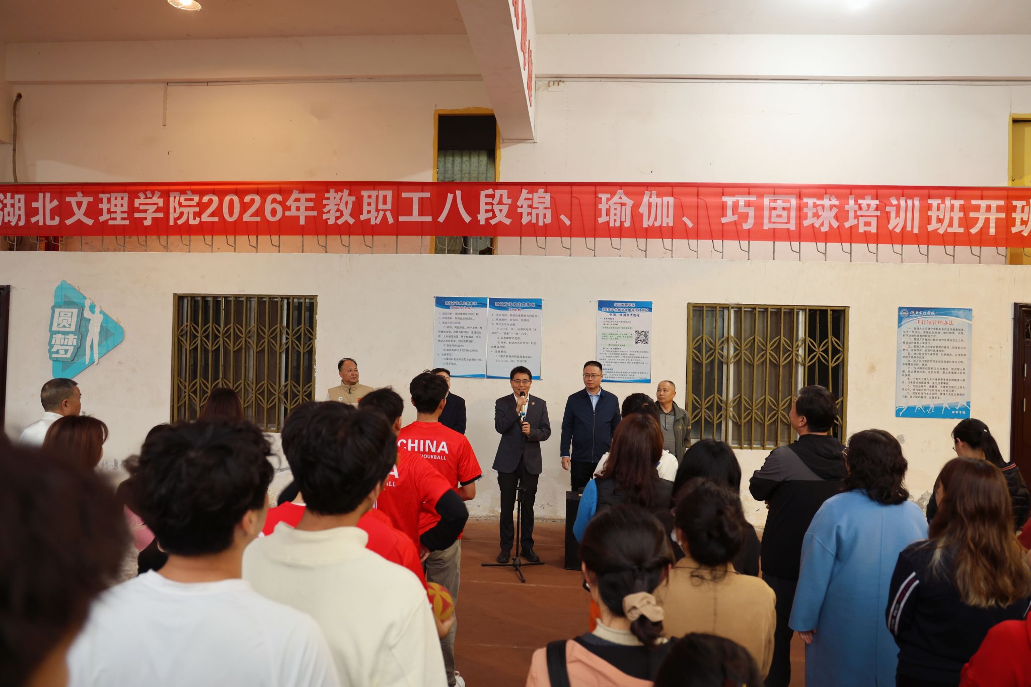(工会 通讯员 潘清玉 张全娥)为深入开展“我为师生办实事”实践活动,丰富教职工康养服务,倡导健康生活理念,由学校工会组织的教职工八段锦、瑜伽、巧固球培训班于4月8日正式开班。学校党委书记吴超仲出席开班仪式并宣布培训班开班。工会常务副主席刘浩致辞。体育学院院长、教代会文体活动专委会主任张华江主持开班仪式。