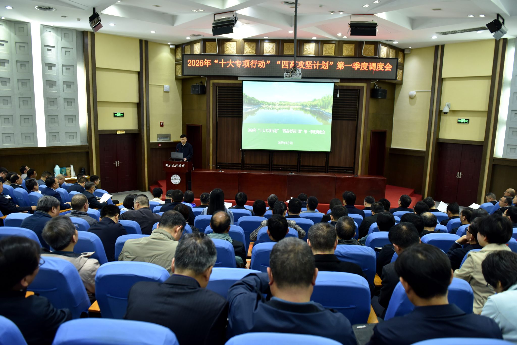 (发规处 通讯员 陈都河川)4月9日,学校召开2026年“十大专项行动”“四高攻坚计划”第一季度调度会。全体在校校领导、中层干部参加会议。会议由校长杜国锋主持。