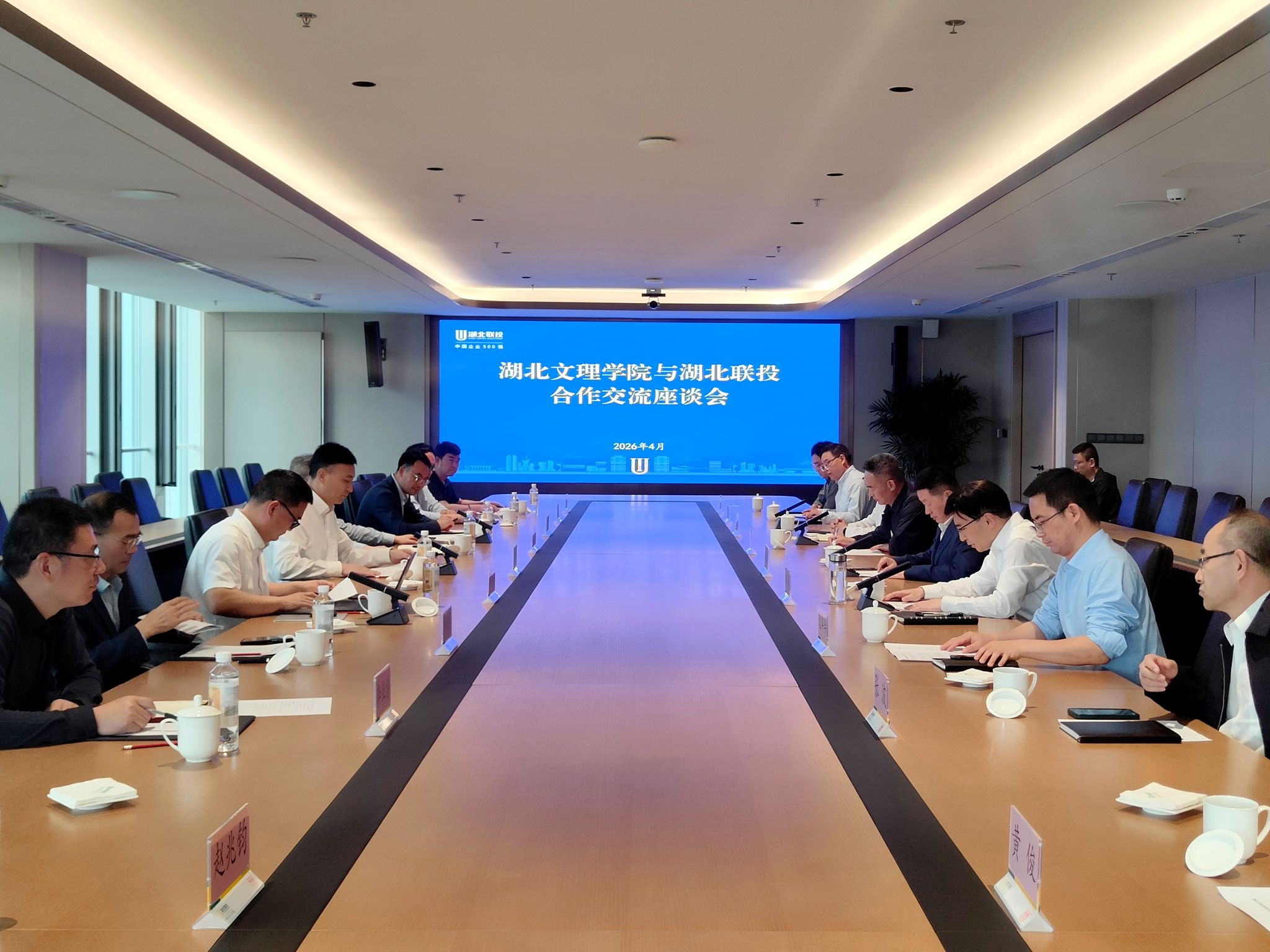 (党政办 通讯员 赵兆钧)4月17日,学校校长杜国锋,纪委书记、监察专员张宇辉一行赴湖北联投集团有限公司(以下简称“湖北联投”)调研交流,并与湖北联投总经理刘光辉、副总经理雷宗江举行会谈。双方围绕产学研合作、人才培养、技术攻关、协同创新、毕业生就业等方面进行了深入交流,共商深化校企合作。