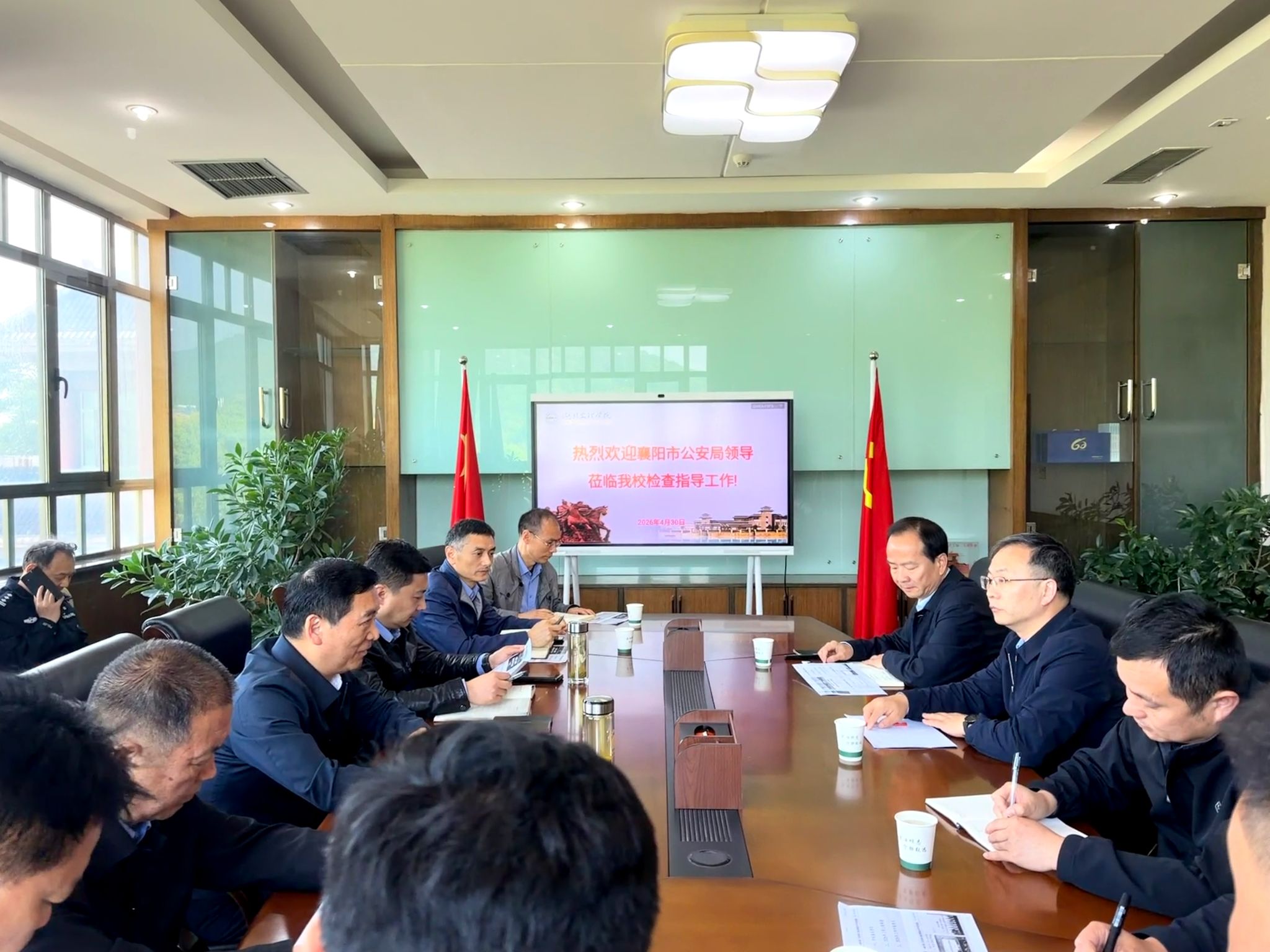 会上,学校保卫处负责人汇报了学校“一核心引领、五实协同”校园安全管理模式取得的工作成效。张樊围绕统筹学校发展与安全、守牢政治安全防线、排查化解各类风险隐患等重点工作,与调研组进行了深入交流。王绍洪对学校校园安全稳定工作给予肯定,并要求学校进一步增强安全稳定意识,细化安全工作举措,健全警校联动机制,充分发挥在襄高校示范标杆作用。