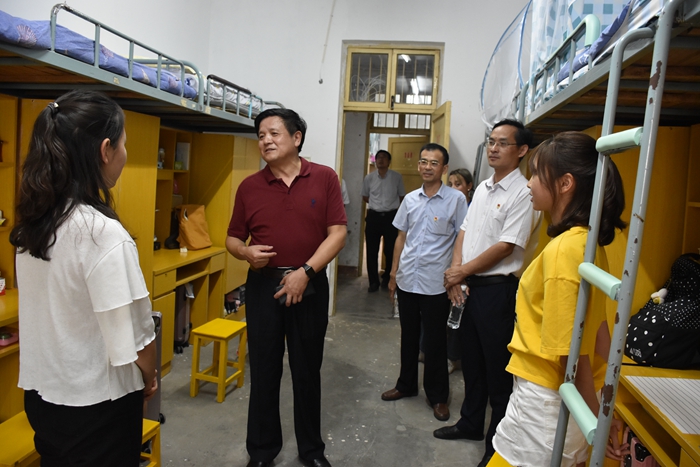 每到一间新生宿舍,丁世学和新生聊大学四年的规划与期望;和新生家长聊孩子的教育,他反复说,“我们对学生有‘四严’,请您放心,我们共同努力,让孩子成人成才”。