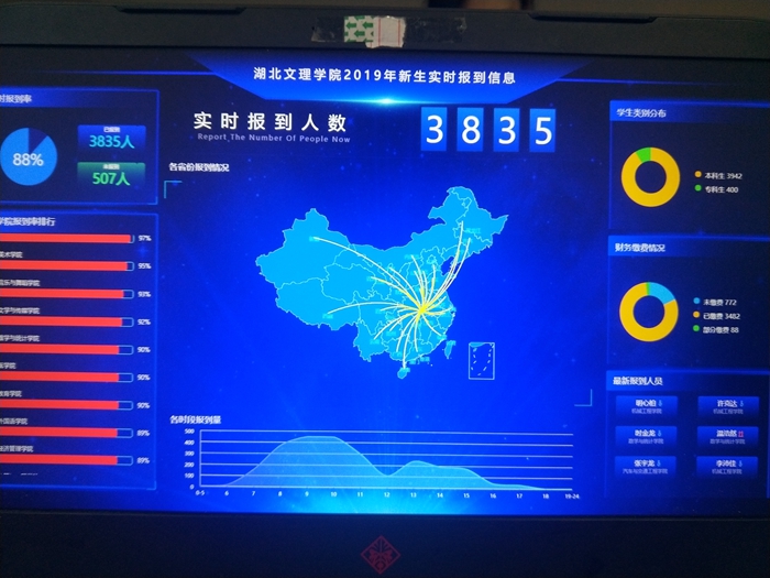 2018年上半年学校便开始系统调试工作,今年首次运用在迎新工作上,大大提高了报到的速度与效率。“通过实时数据可以了解到学生的到站信息,我们可以合理安排通勤车辆,提高工作效率。”学工处老师袁园介绍,通过该系统实时查看数据,让政工老师队伍提前了解学生信息,可以更好地开展学生工作。