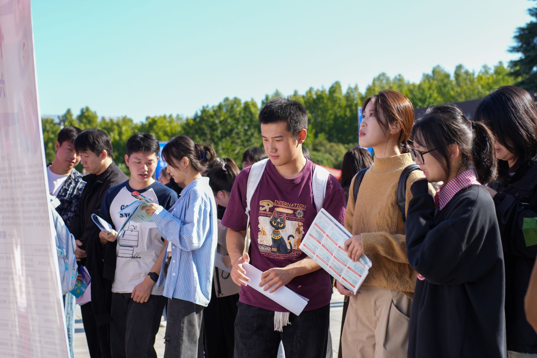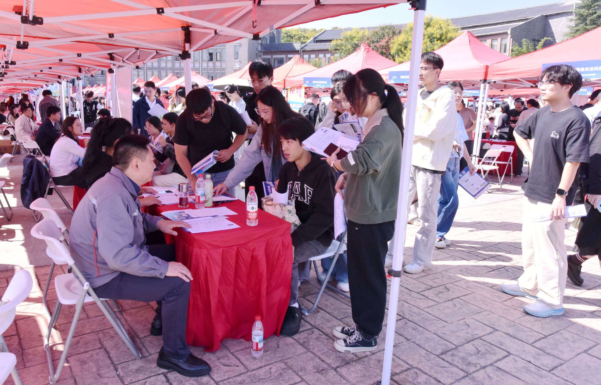 现场人头攒动,气氛热烈。招聘专区内,毕业生手持简历,积极与用人单位沟通交流。各二级学院就业工作负责人主动对接专业相关企业,推动人才供需精准匹配。