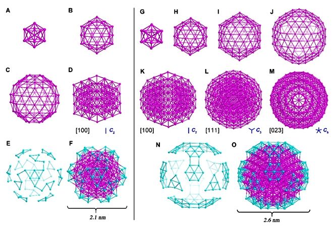 图 Ag213(左)和Ag429(右)纳米团簇多层嵌套二十面体结构解析